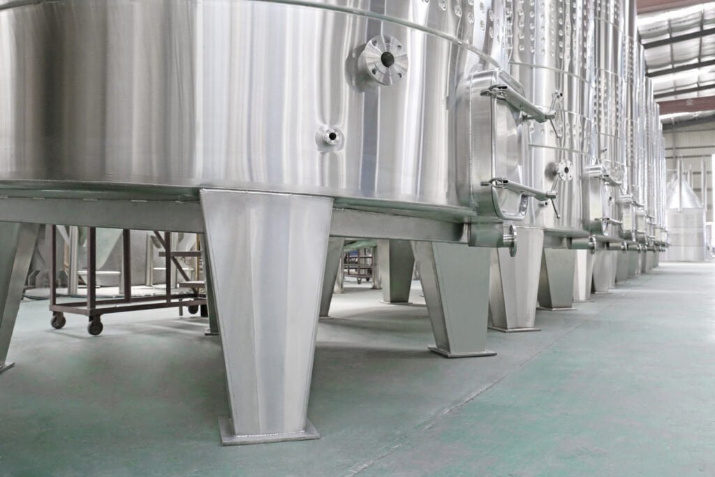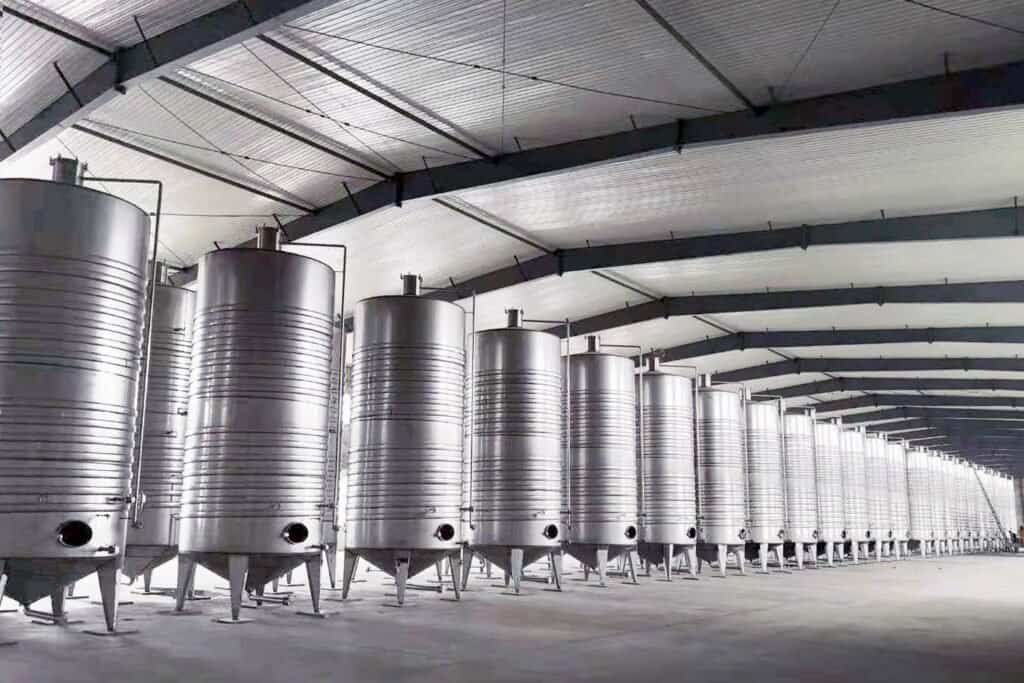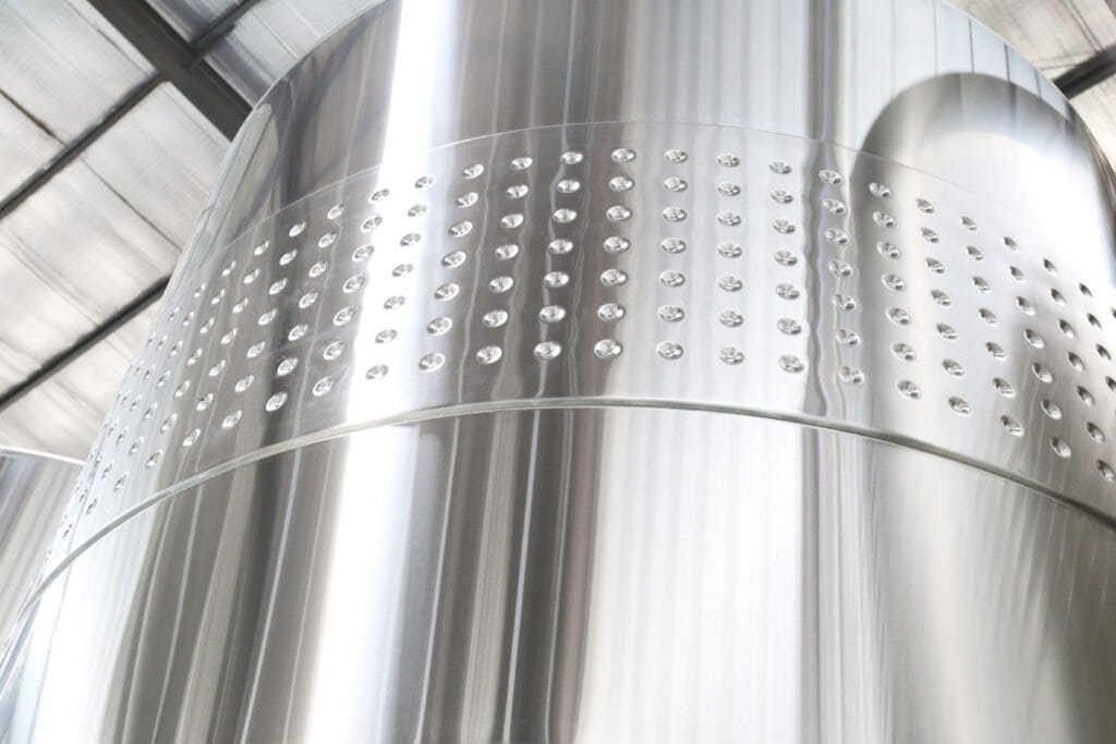 Stainless steel offers better temperature control, hygiene, and durability, and preserves the grape’s natural aroma without imparting additional flavors.